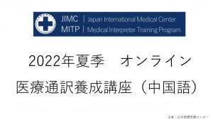2022年夏季 オンライン医療通訳養成講座(中国語)募集開始のお知らせ