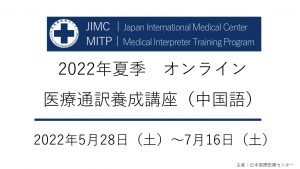 2022年夏季 オンライン医療通訳養成講座(中国語)募集開始のお知らせ