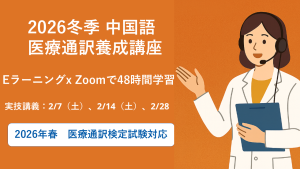 2026年冬季 中国語 医療通訳養成基礎講座(検定試験対応講座)