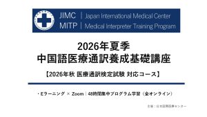 2026年夏季 中国語医療通訳養成基礎講座 【2026年秋 医療通訳検定試験 対応コース】